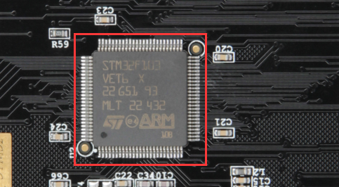 图 1‑1 STM32F103VET6 实物图(红色框中部分)