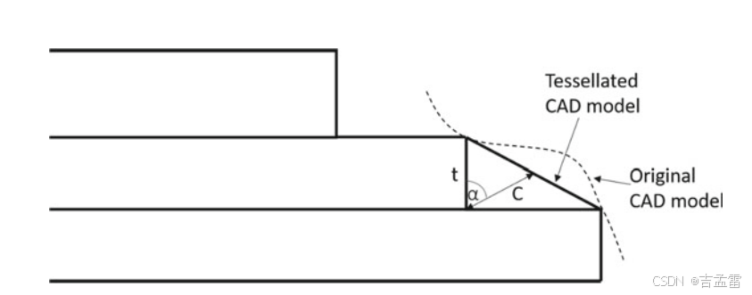 FDM是以熔融丝材分层创建的产品,所以重点就是相邻层之间的粘接和融合情况,在打印过程中,挤出的状态会影响打印产品的精度和质量性能,直接体现就是表面的粗糙度,在打印出的产品表面出现打印过程的'来回'轨迹,即为所谓的阶梯效应。如下图所示,t为层的厚度,C为台阶高度,α为台阶高度和层厚度之间的角度。阶梯效应导致平均的粗糙度值Ra在微米范围内,在打印表面的台阶和凹槽也可能导致水分和其他电解质渗透到层间,这些问题也限制了FDM在牙科、生物医学等领域的应用。