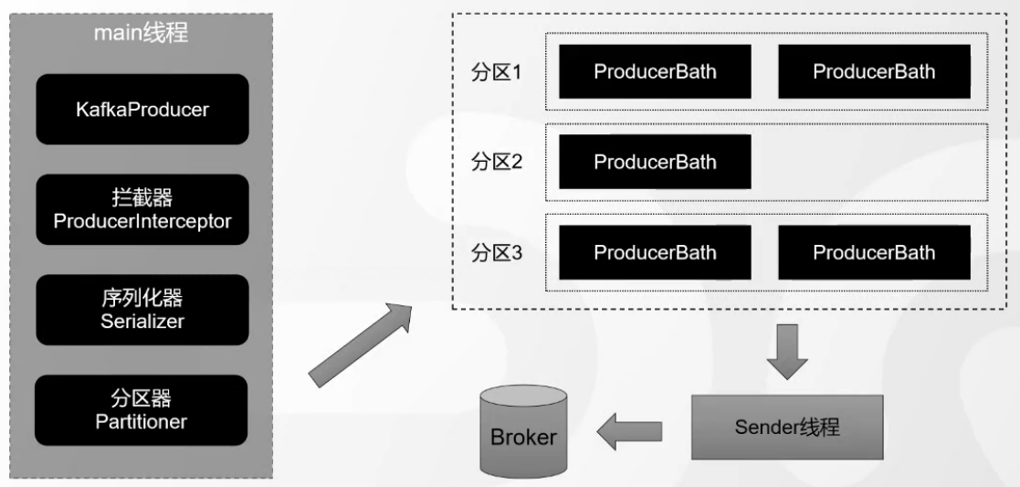 消息发送的整体流程。生产端主要由两个线程协调运行。这两条线程分别为main线程和sender线程(发送线程)。