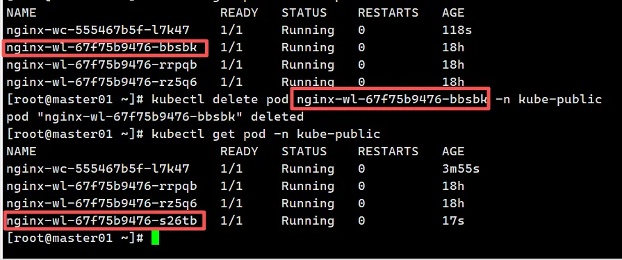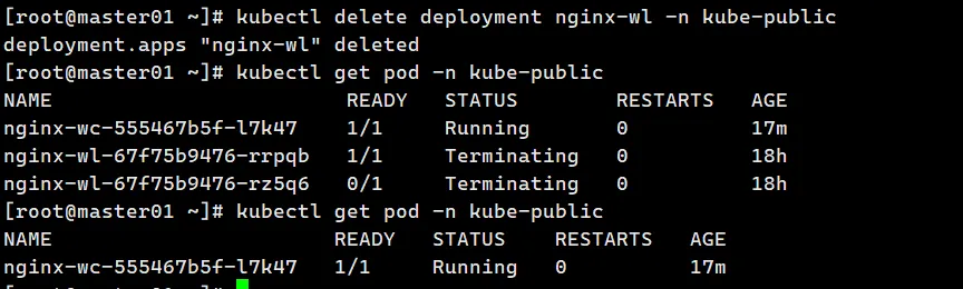 kubectl delete pod nginx-wc-555467b5f-8wpls -n kube-public