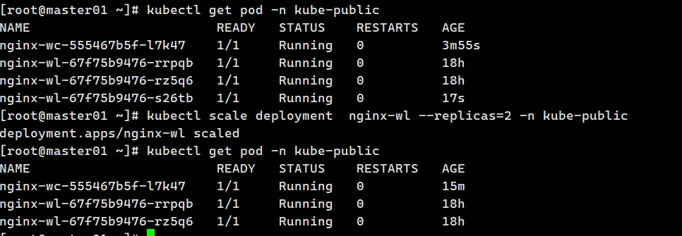 kubectl scale deployment nginx-wl --replicas=2 -n kube-public