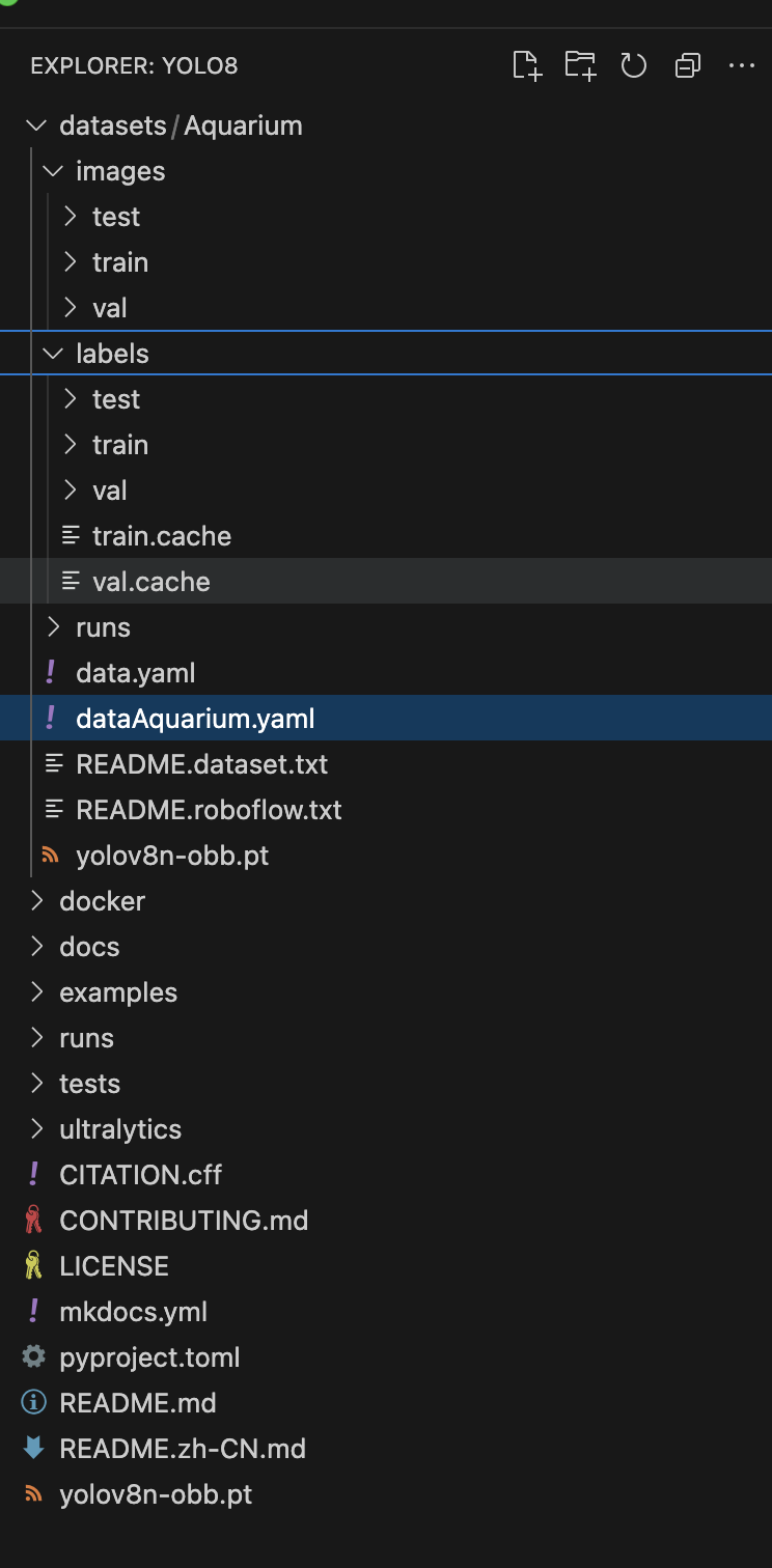 - 将训练好的模型 best.pt 保存在项目的根目录,并改名为 "yolov8nObbAquarium.pt"。