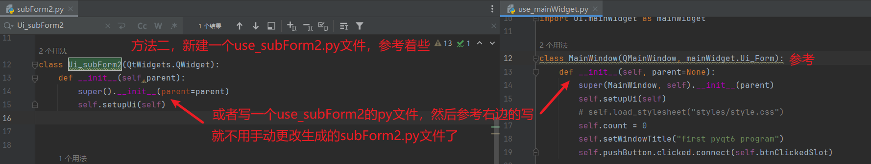 一定要注意这里的文件名和类名的位置和路径,PyCharm和QT在这儿处理不一样,