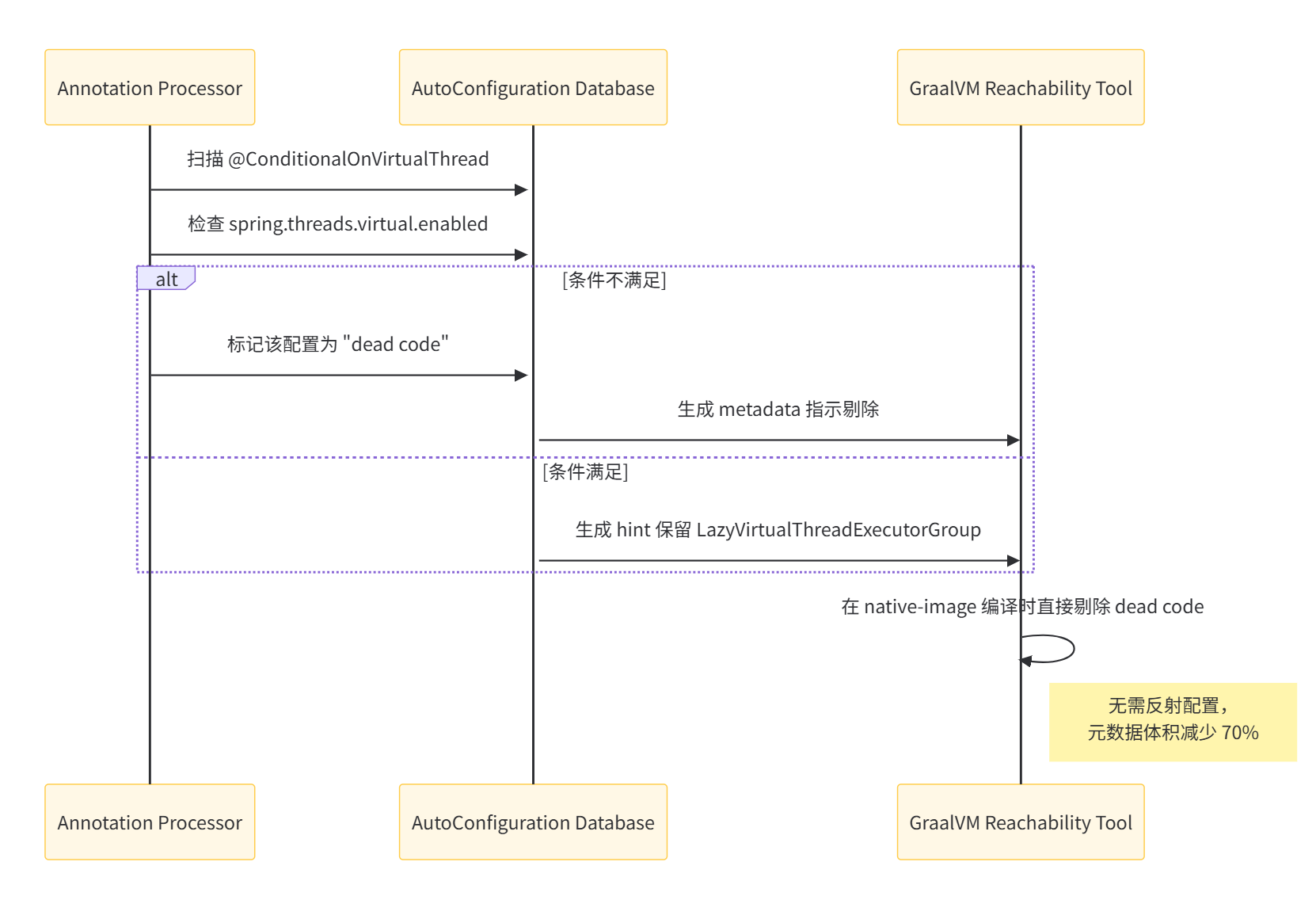 ConditionEvaluator前移到了spring-boot-aot-compiler的ConfigurationClassParser,启动时直接读取二进制的AutoConfiguration.db(Protobuf 格式),O(1) 复杂度 -