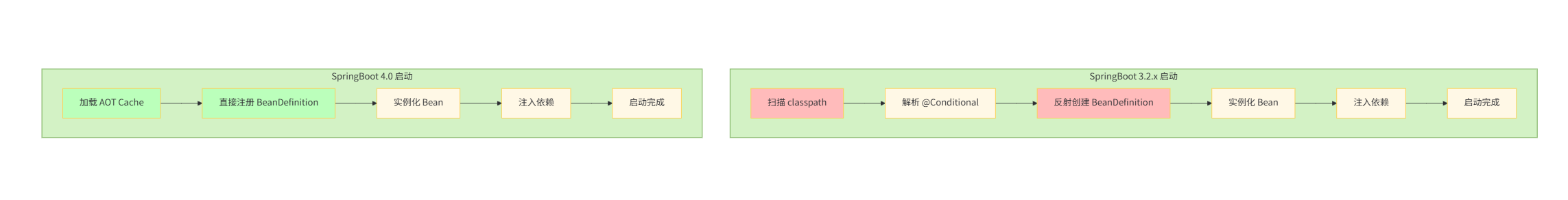 加载 AOT Cache直接注册 BeanDefinition实例化 Bean注入依赖启动完成