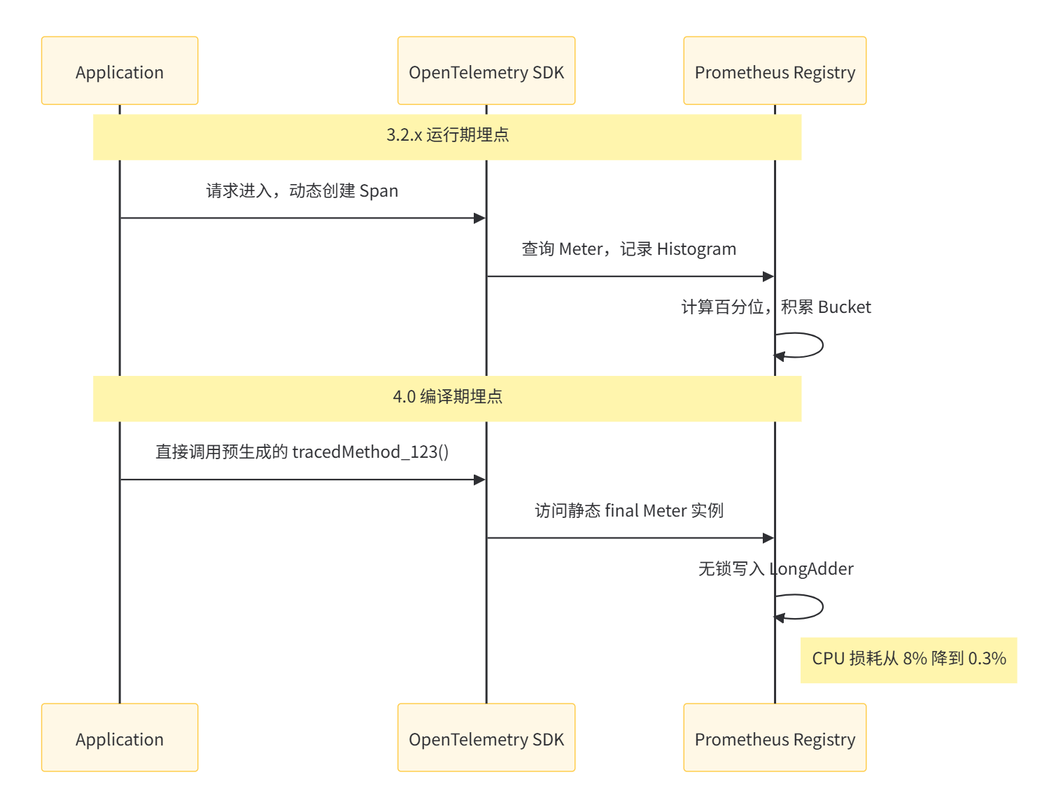 传统可观测(Micrometer + OpenTelemetry)在 3.2.x 中面临两难: