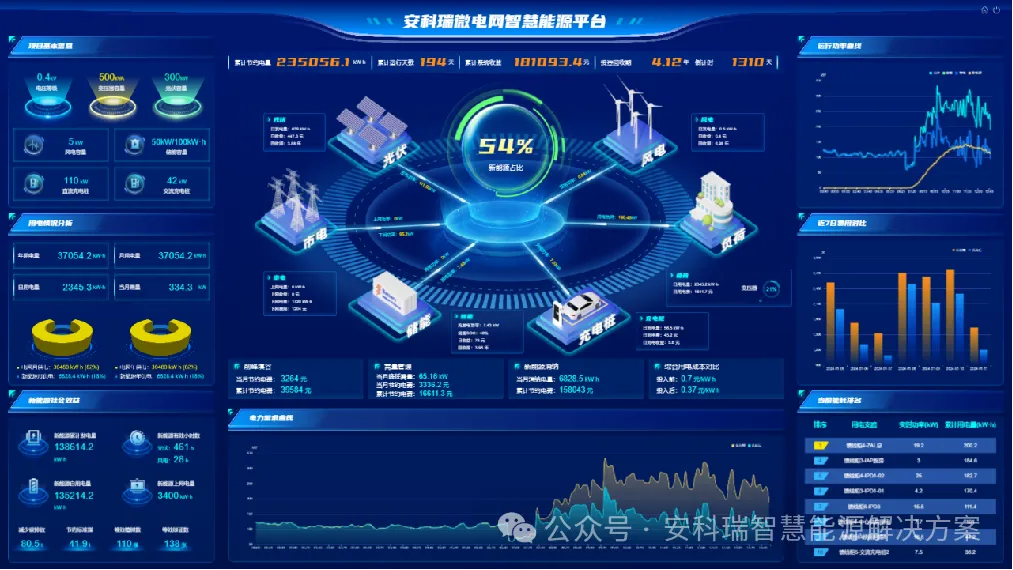 展望未来,随着技术进步与模式创新,零碳园区微电网将更加智能化、系统化。其发展不仅需要硬件支撑,也离不开软件平台的协同。目前,已有一些能效管理与用电安全解决方案提供商,例如安科瑞电气,致力于为企业微电网提供系统化服务。这类方案通常涵盖能源数据采集、实时监控、统计分析、碳核算等功能,并支持多角色权限管理与远程运维,帮助园区实现能源的可视、可控、可优。例如,通过安装智能网关与传感设备,系统可实时收集各回路用电数据,自动生成用能报表与碳排放分析,为节能决策提供依据。平台一般支持网页端访问,兼容多种语言,实施灵活,有助于降低长期维护成本。