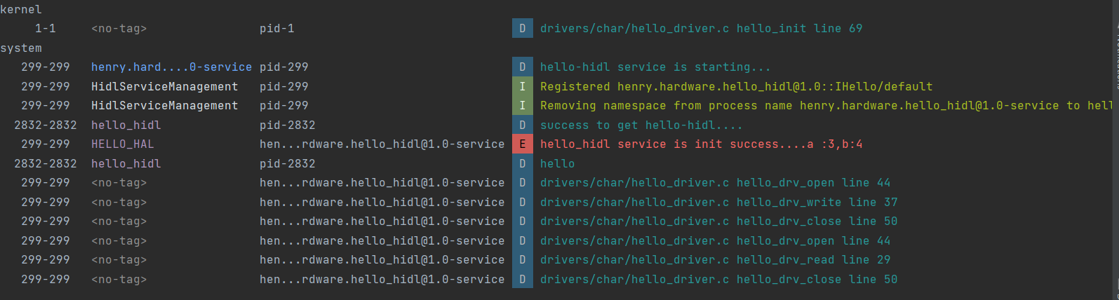 最后测试:可以看到 Hello.cpp里面的log以及驱动log都成功打印了