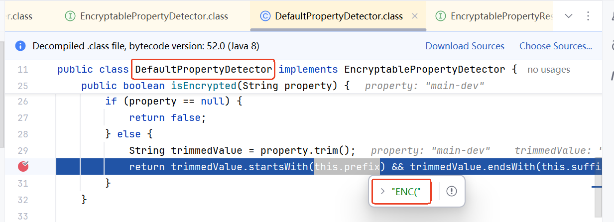 isEncrypted方法会判断前缀是否包含"ENC(",后缀是否包含")"
