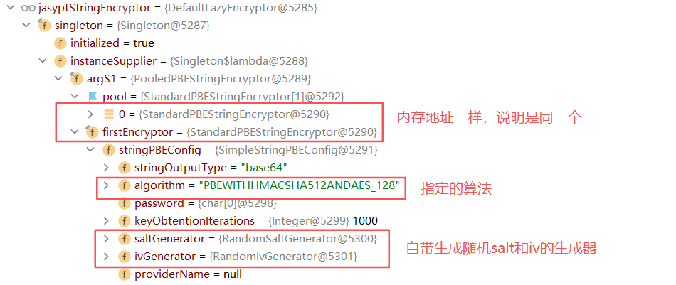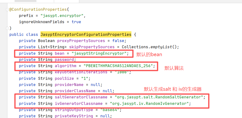 ②工具类指定生成偏移量(iv)或盐值(salt)的类,跟SpringBoot启动时指定的不一样