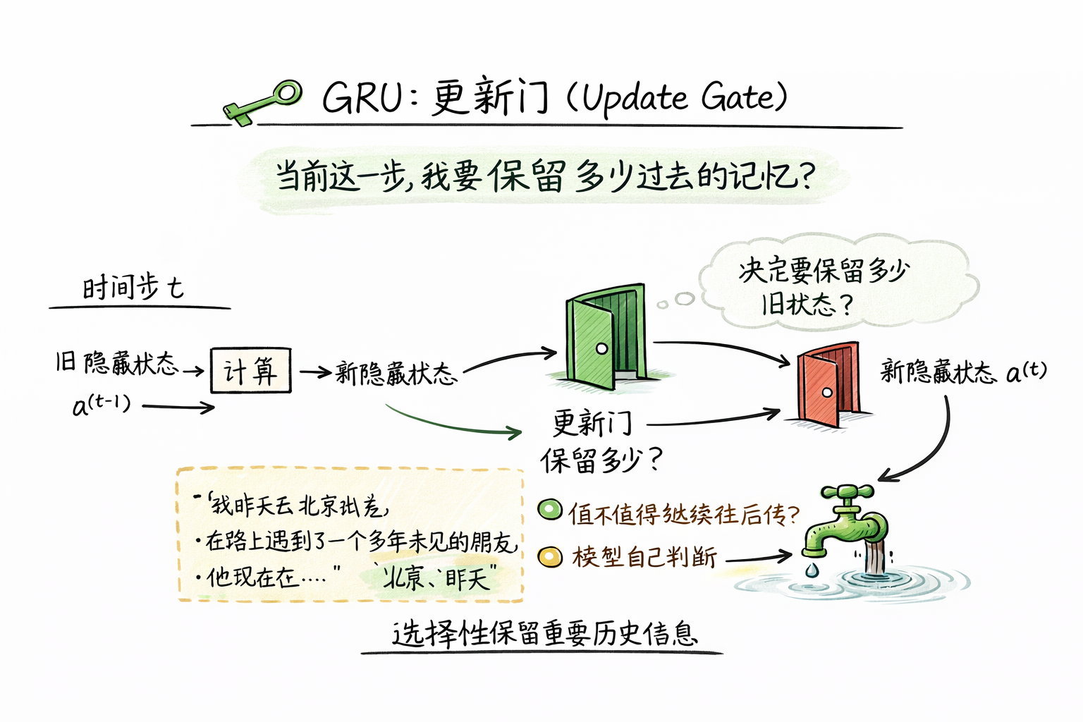总结来说,更新门衡量的是:"这条历史信息,值不值得继续往后传?"