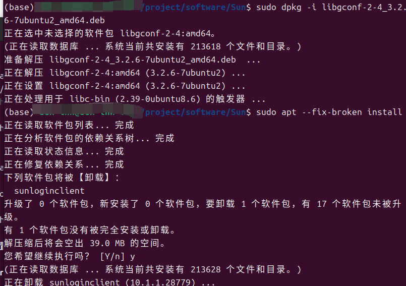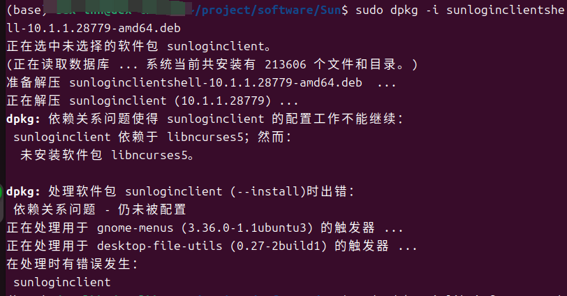 执行sudo dpkg -i sunloginclientshell-10.1.1.28779-amd64.deb 出错了