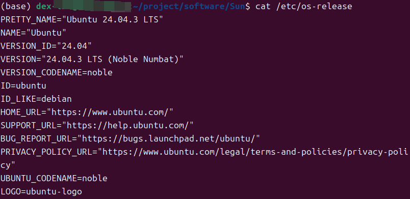 通过上述命令验证系统为ubuntu24.04,确保后续操作与系统版本匹配