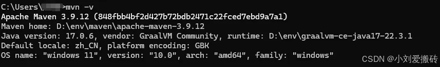 - 验证是否配置成功mvn -v (最好重启一下电脑或者重启命令行工具,有时候会不好使)
