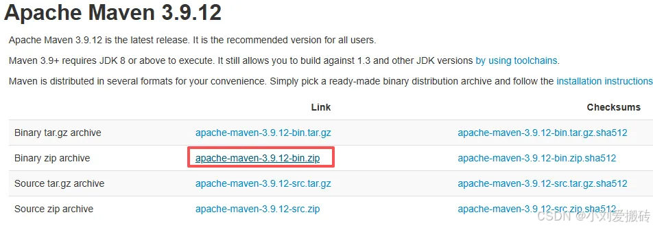 首先从maven官网下载新的maven安装包