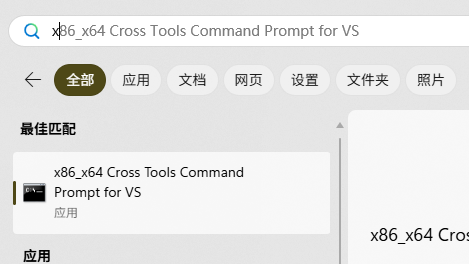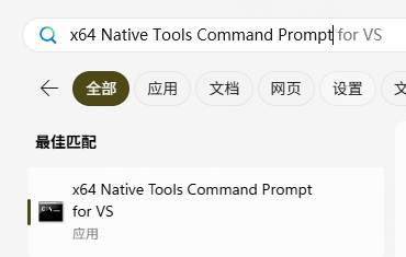 安装成功以后进行验证本地程序搜索x64 Native Tools Command Prompt for VS