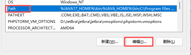 修改path,将你刚刚创建的JAVA17_HOME增加到path中,如果原来存在其他JDK环境,17的位置一定要在其他环境的前面,同理如果你想切换JDK环境只需要切换先后顺序即可