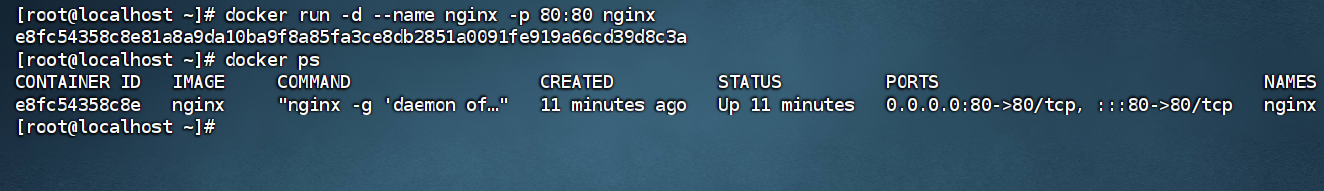 docker run -d -p 80:80 --name nginx -v html:/usr/share/nginx/html nginx