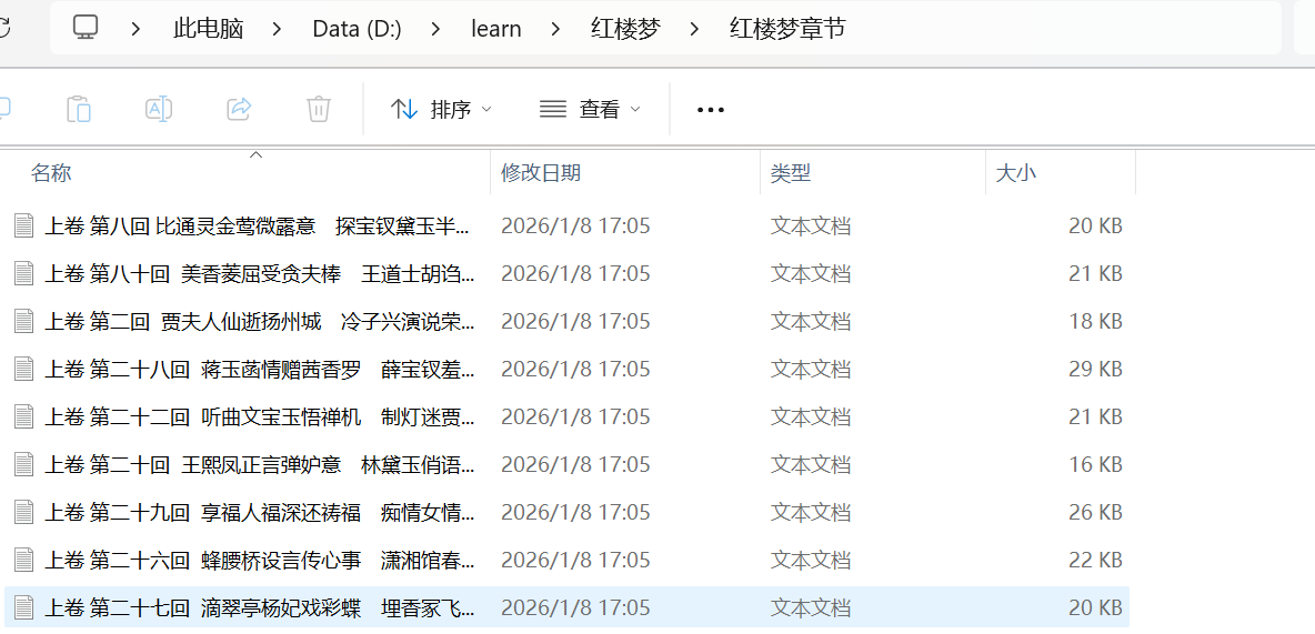path = os.path.join('.\\红楼梦\\红楼梦章节' , juan_name)#构建一个完整的路径