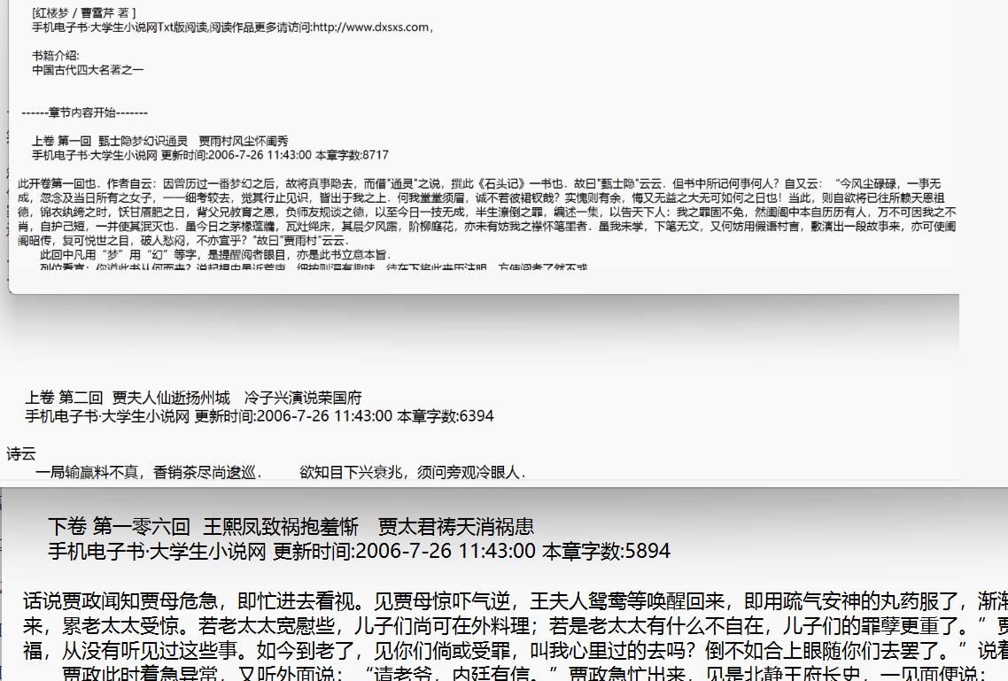 1.把红楼梦txt每一回分为一章