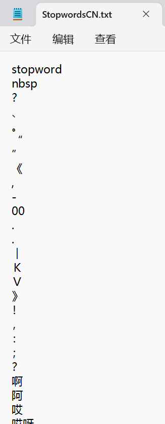 stopwordCN.txt,这里stopword是表头
