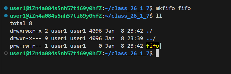 1.使用mkfifo [NAME]创建一个fifo文件,可以发现开头是p,就说明创建的是管道文件