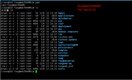 6、集群创建成功,TongWeb和会话服务器会创建至/opt/TongWeb7049M5/Agent/nodes/tongweb-1和/opt/TongWeb7049M5/Agent/nodes/tongdatagrid-1