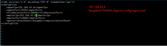 1、修改两台服务器TongWeb7049M5/Agent/config/agent.xml