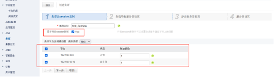 3、创建集群,选择开启session复制。