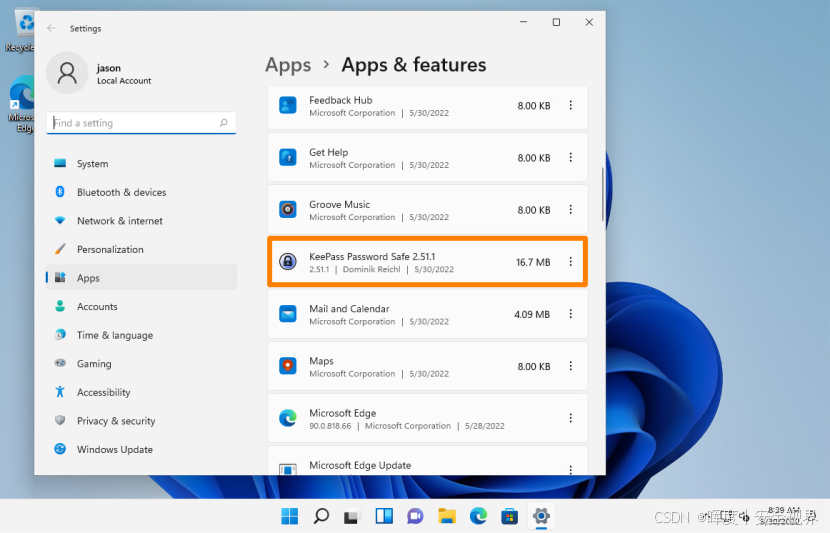 由于拥有 GUI 访问权限,我们使用系统内置的"应用和功能"列表进行查看: