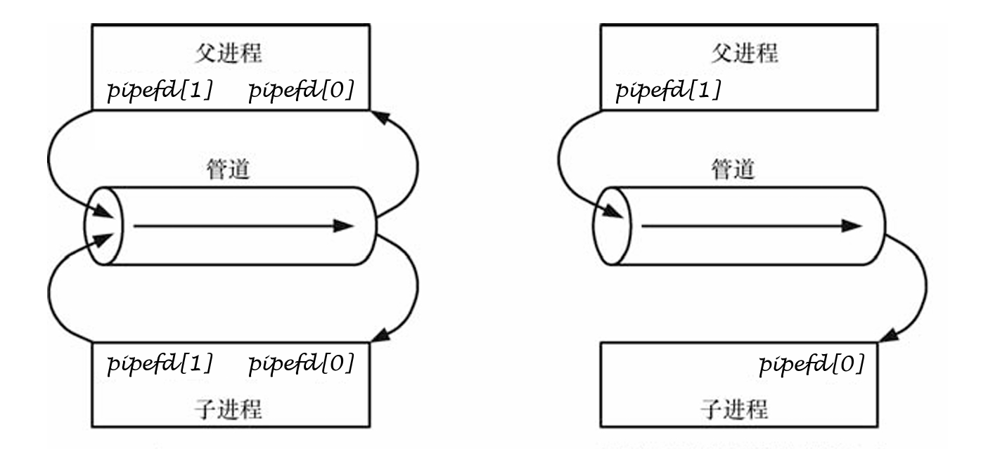 - 数组 pipefd 用于返回两个引用管道末端的文件描述符