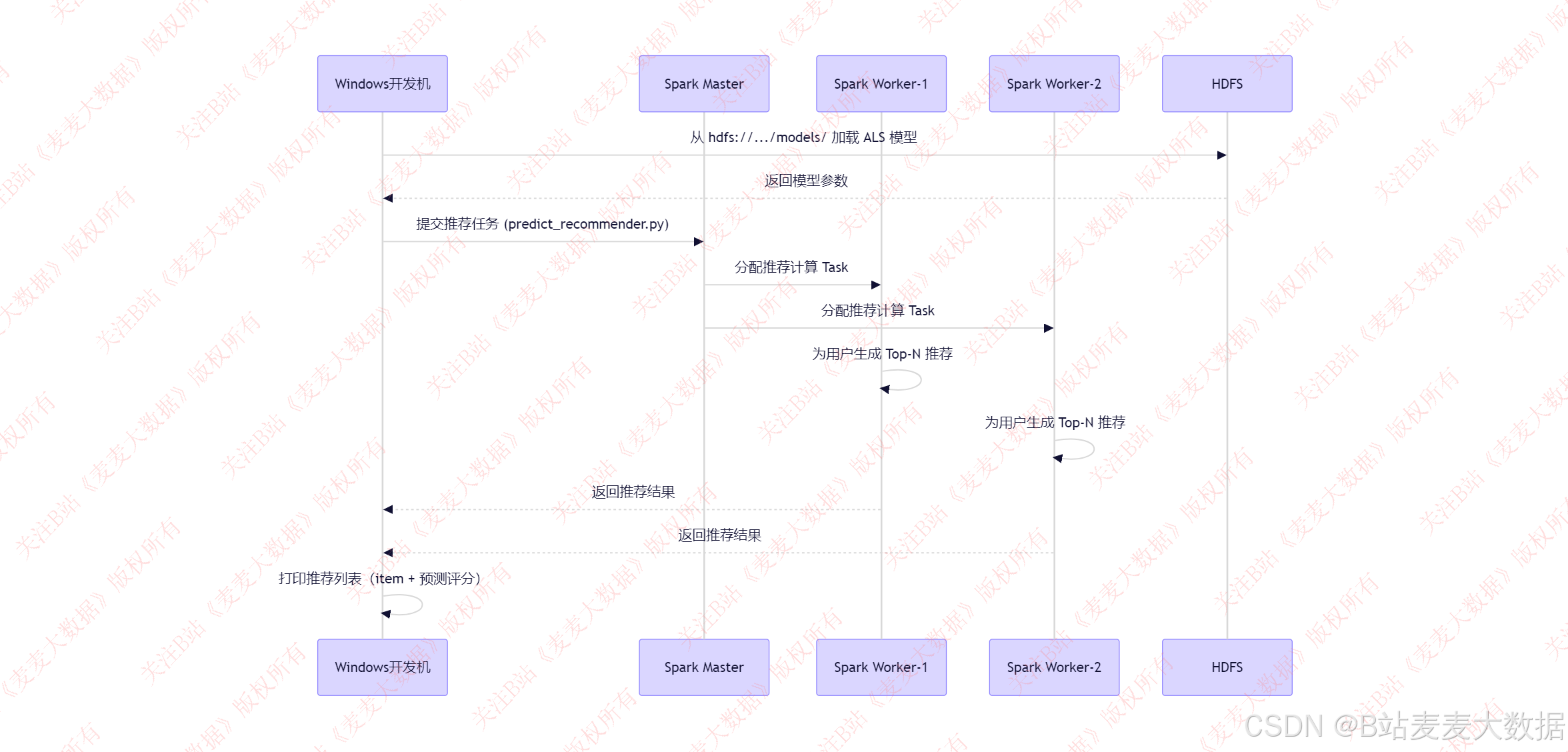 spark-master+2 spark-worker),实现高可用性与可扩展性。spark训练时序图: