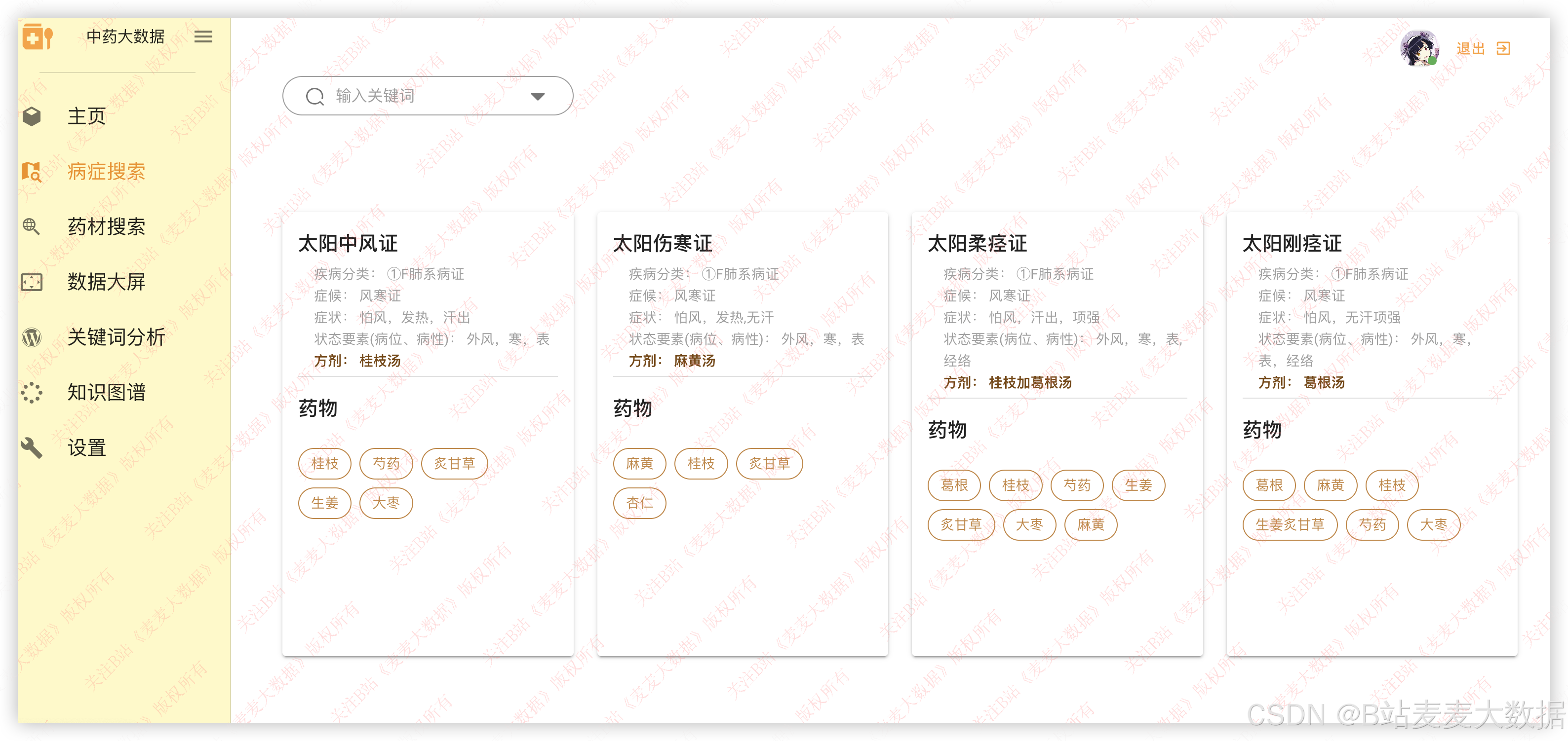 - 药材与病症的卡片式搜索