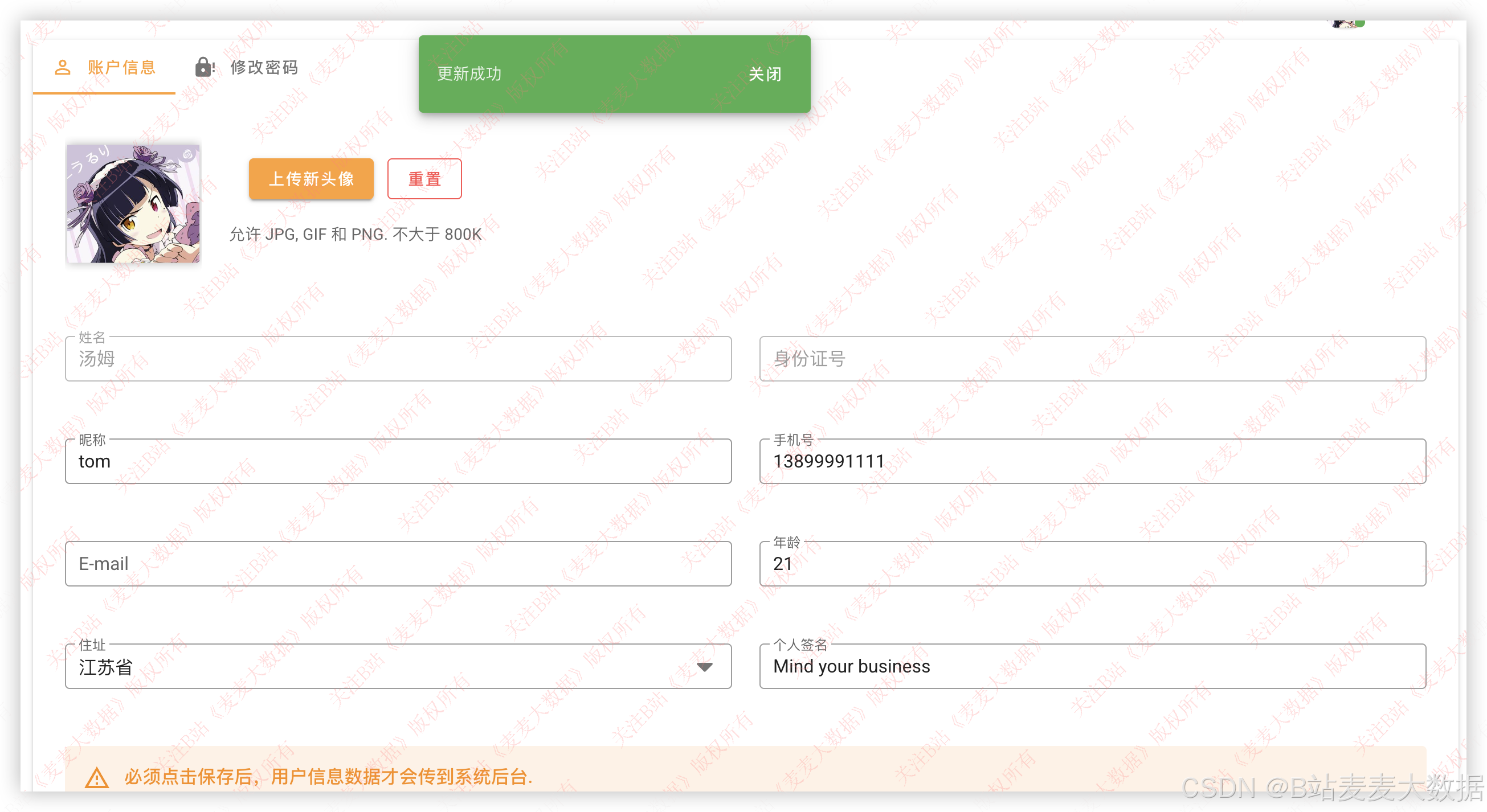 - 个人信息修改与密码管理