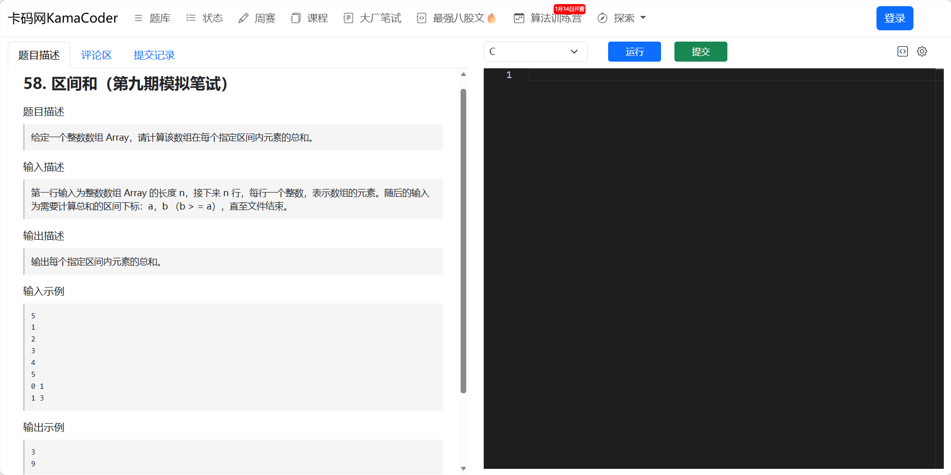 这段代码在 C 语言程序中通常用于处理不确定次数的区间查询。它是"前缀和"题目中标准的输入控制逻辑。