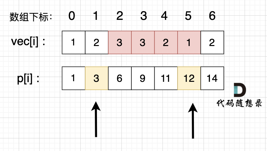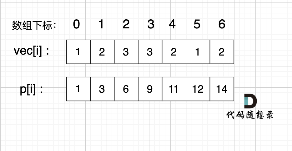 我们先做累加,即 p[i] 表示 下标 0 到 i 的 vec[i] 累加 之和。