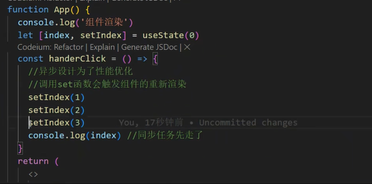 因为调用 set 函数回触发组件的重新渲染