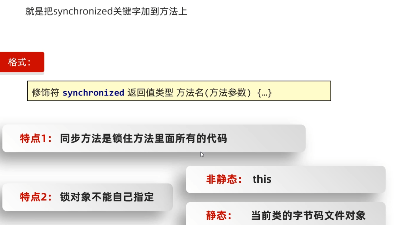 逻辑:先写同步代码块,再把同步代码块抽取成同步方法