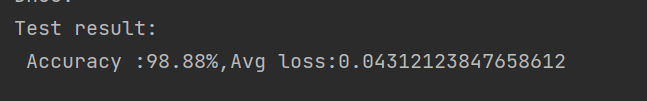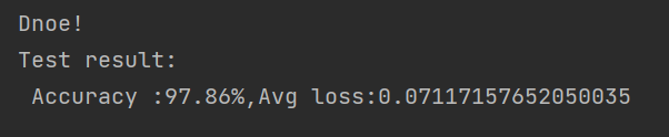 print(f"Test result: \n Accuracy :{(100*correct)}%,Avg loss:{test_loss}")