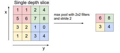 - 最大池化(max pooling):选图像区域的最大值作为该区域池化后的值。是最为常见的。