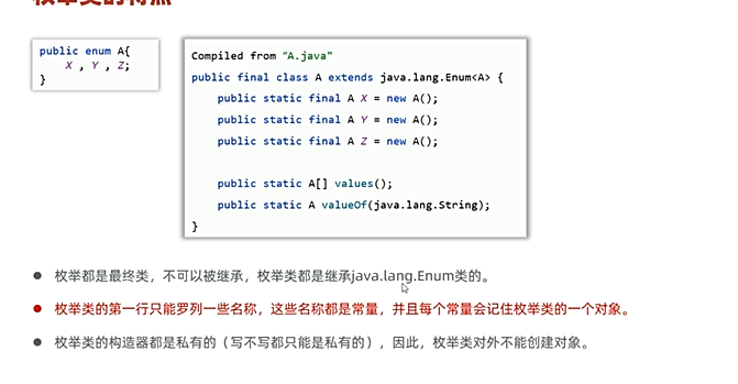 而这些名称,本质是常量,每个常量都记住了枚举类的一个对象