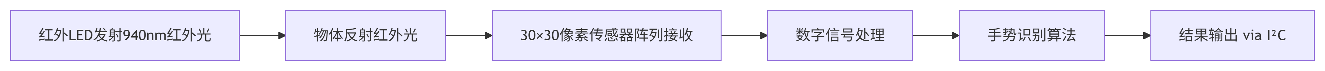 PAJ7620U2是一款高度集成的光学手势识别传感器,其核心工作原理基于红外成像与模式识别