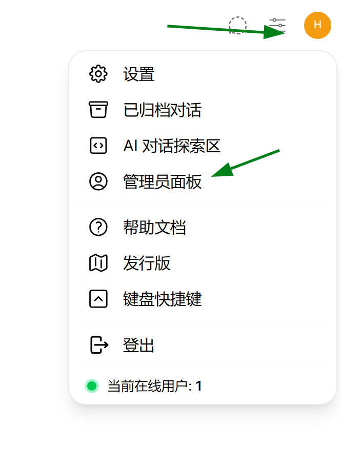 登录后,在页面的右上角圆圈中找到管理员面板: