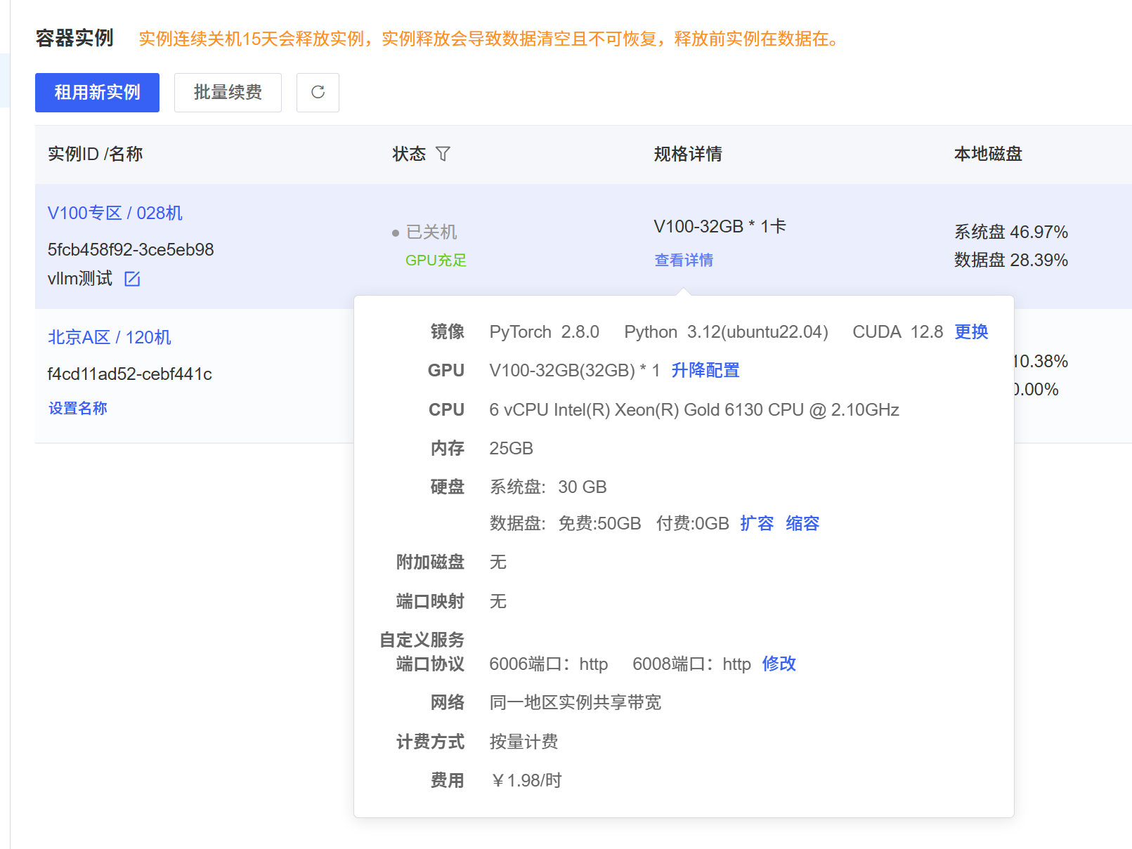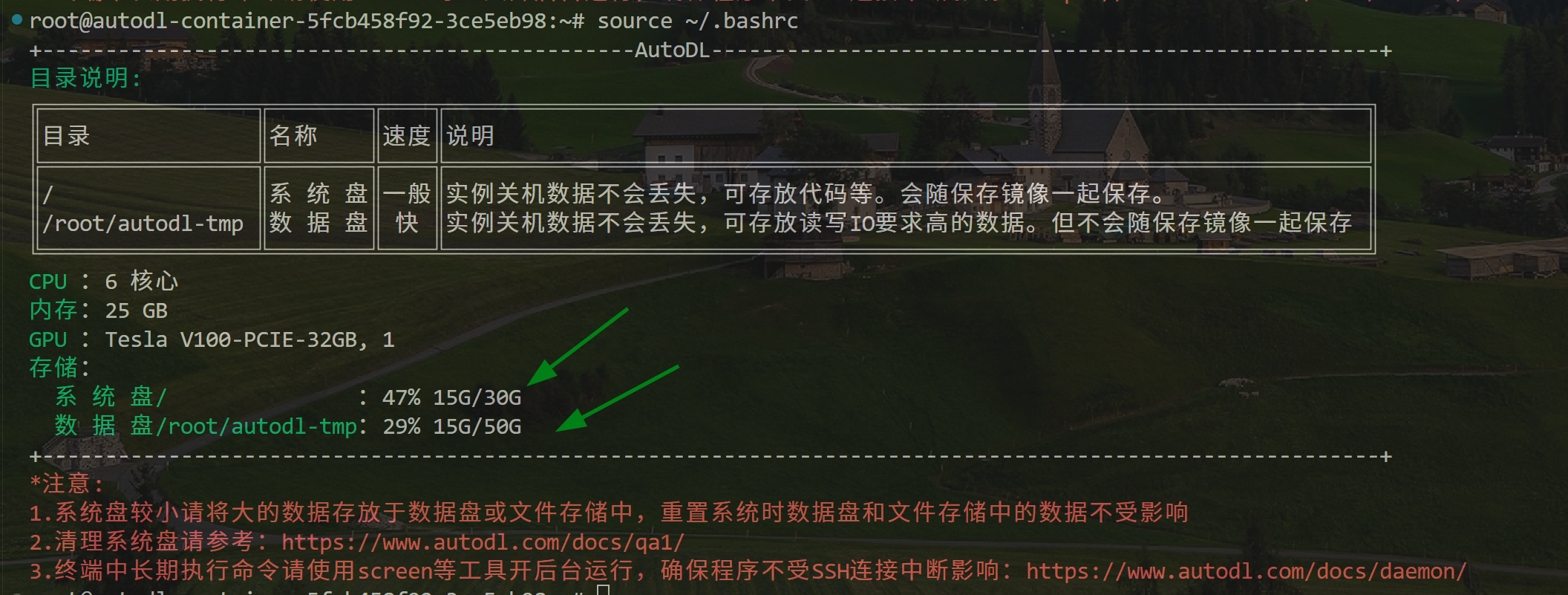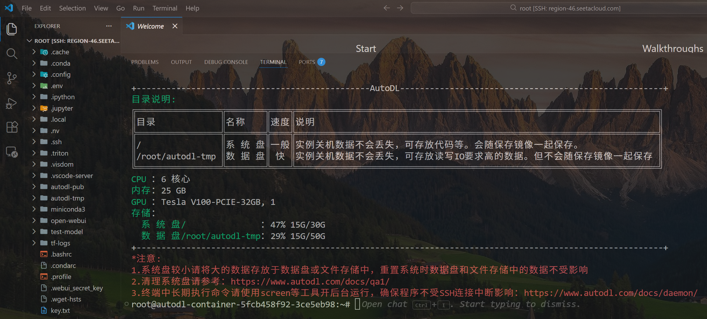 - AutoDL:选用 V100 32G 容器