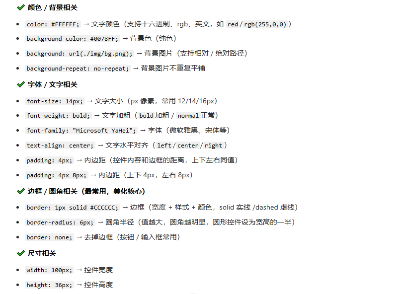 QSS 常用样式属性速查表