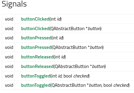 我查询了官方文档,我看到了在 qt6 之前的版本对于 QButtonGroup 的信号定义如下图: