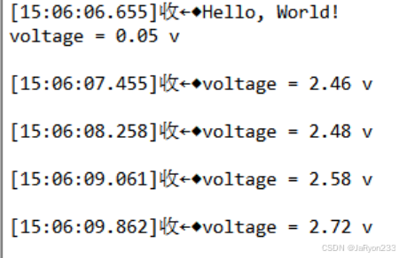 最后的最后就是在主程序调用转换 然后利用串口循环打印电压数据进行显示了。