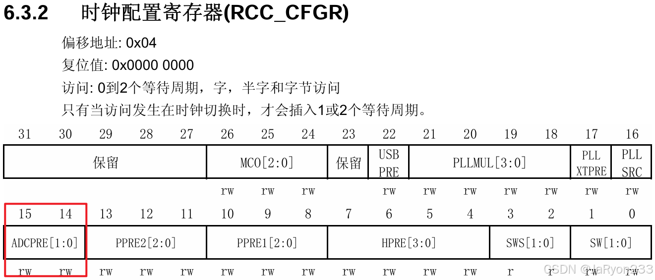 RCC->CFGR &= ~RCC_CFGR_ADCPRE_0;