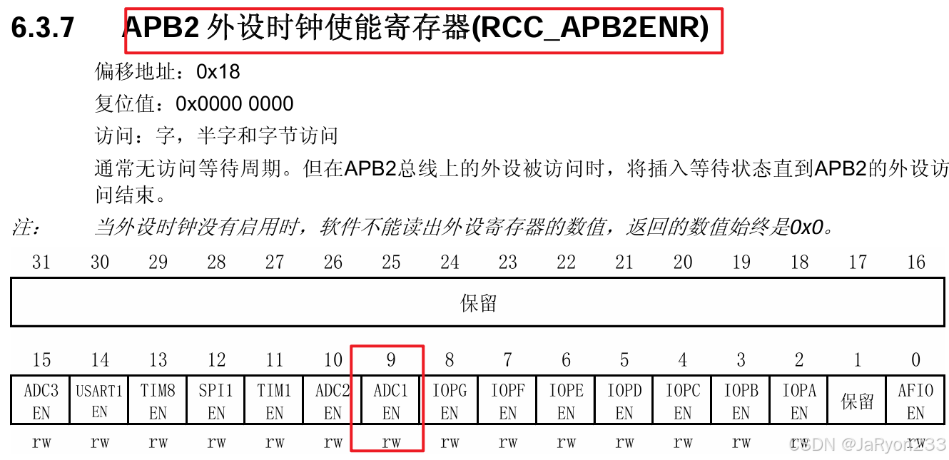 由于默认STM32中的ADC外设是断电状态,也就是寄存器中的ADON位为0,因此首先需要对ADC1上电唤醒;
