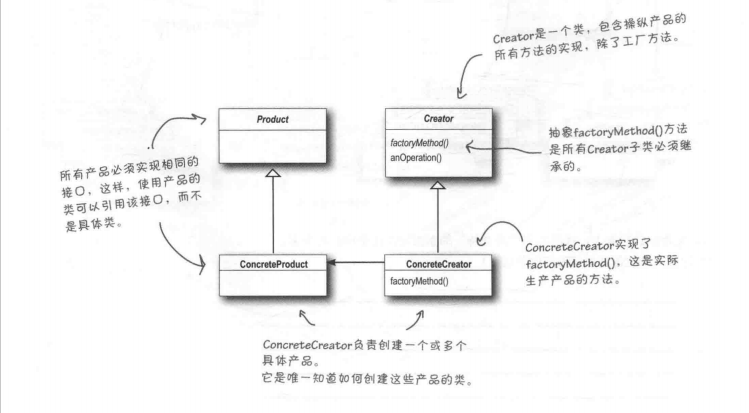 所有工厂模式都封装对象的创建。工厂方法模式通过让子类决定创建哪个对象,来封装对象的创建。我们来看看这些类图,了解这个模式中有哪些玩家: